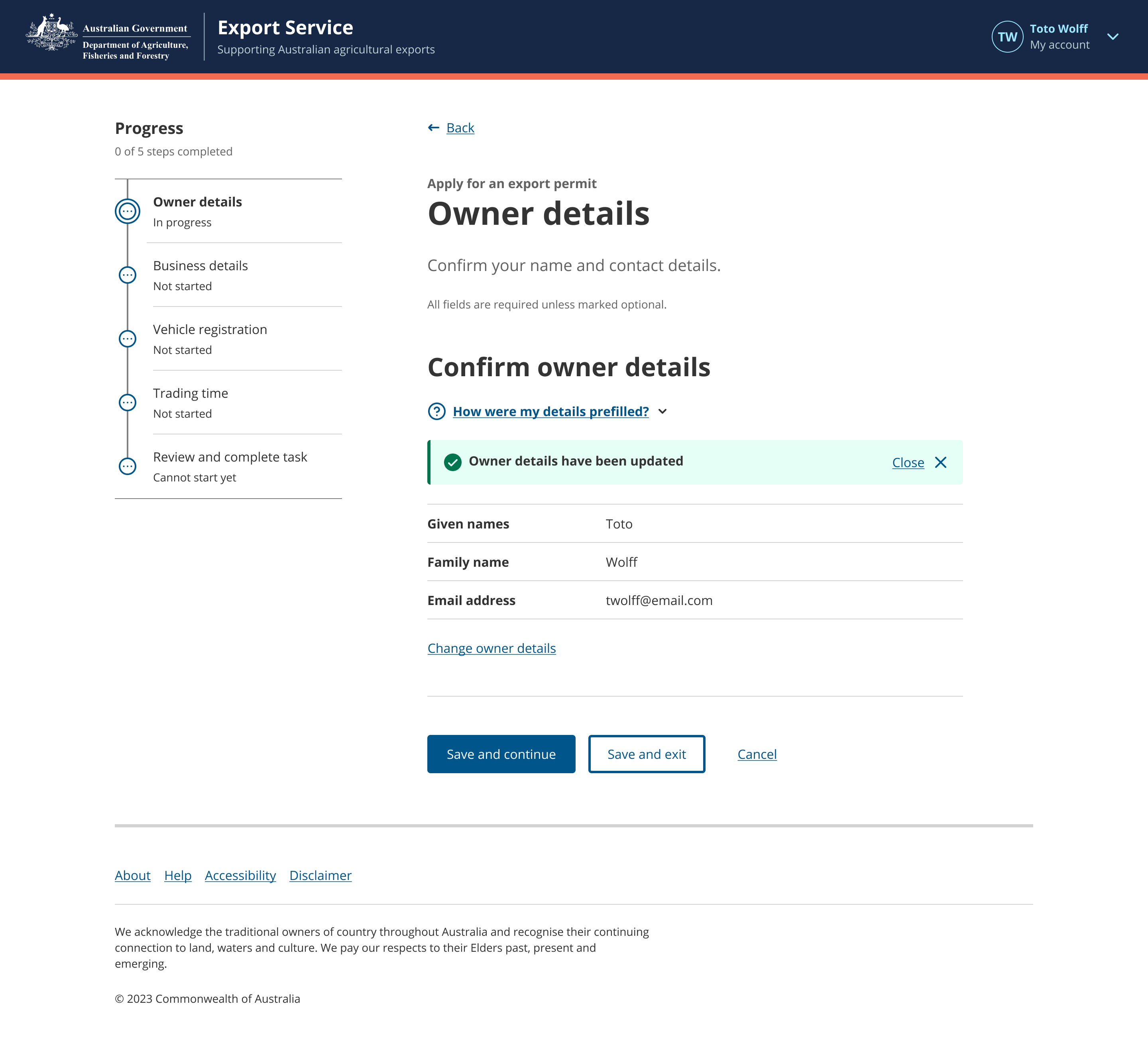 Once the user saves their changes, they’re taken back to the main step page and a section alert is displayed to let them know that their changes were made successfully. The level 2 step is no longer displayed in the Progress indicator; it’s only displayed when the user is on the level 2 step page.